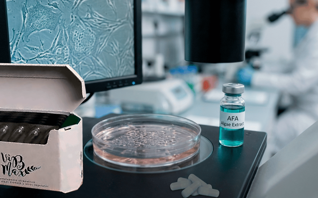 El núcleo de ViBmax es el Alga Klamath (Aphanizomenon Flos-Aquae). A diferencia de cualquier vitamina estándar, este superalimento actúa directamente sobre la médula ósea.